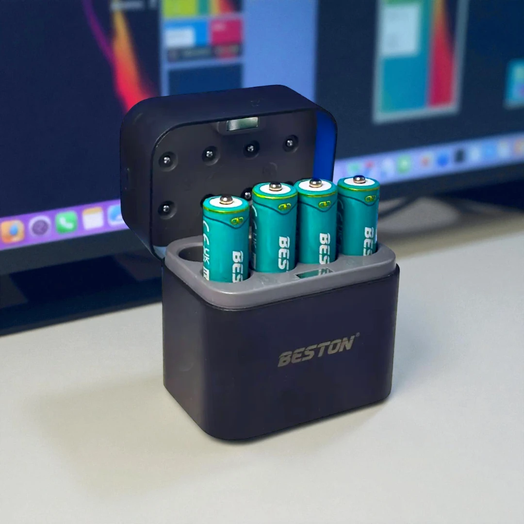 Este modelo incluye 8 pilas AA Li-ion Beston, listas para usar desde el primer día, convirtiéndolo en un kit completo de energía práctica, ecológica y confiable. Su tapa protectora y luces LED indicadoras facilitan un uso cómodo y seguro, mientras que su entrada USB-C asegura compatibilidad universal con cualquier cargador estándar.