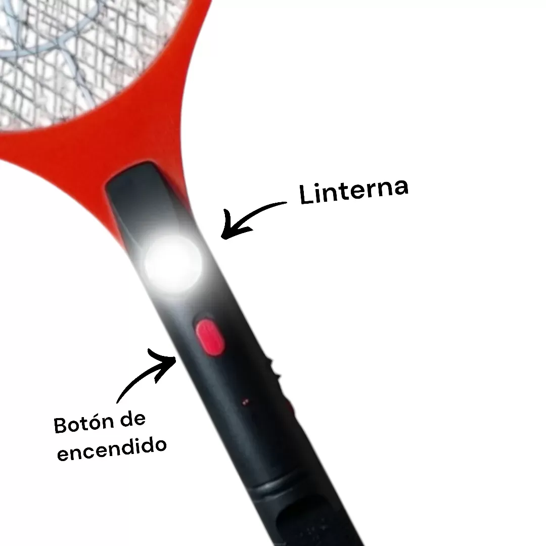 – Equipada con alto voltaje y potencia, produce una descarga eléctrica potente para eliminar eficientemente moscas, mosquitos y otros insectos voladores.
